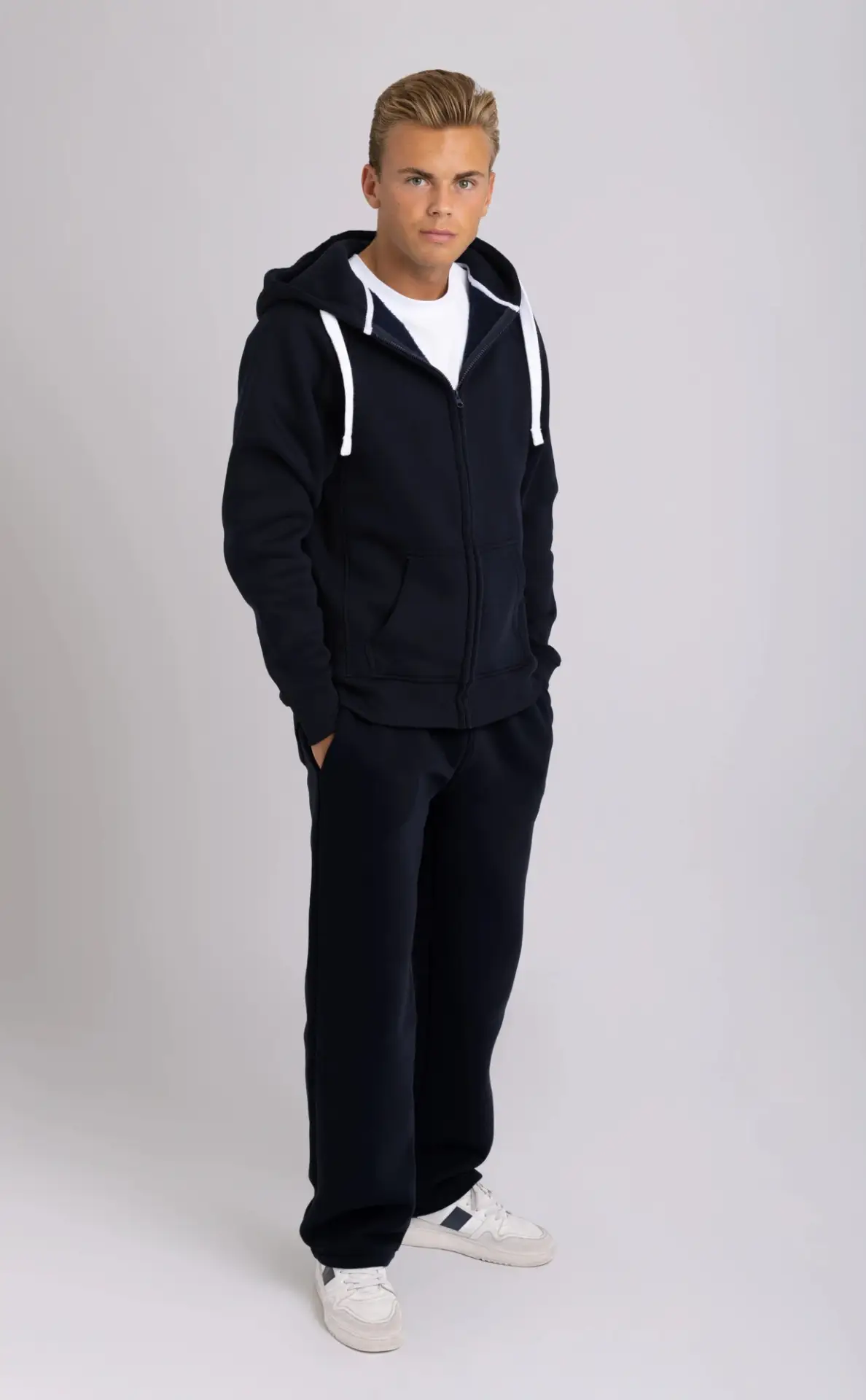 - 80% bomull, 20% polyester på fargene lys rosa og marine